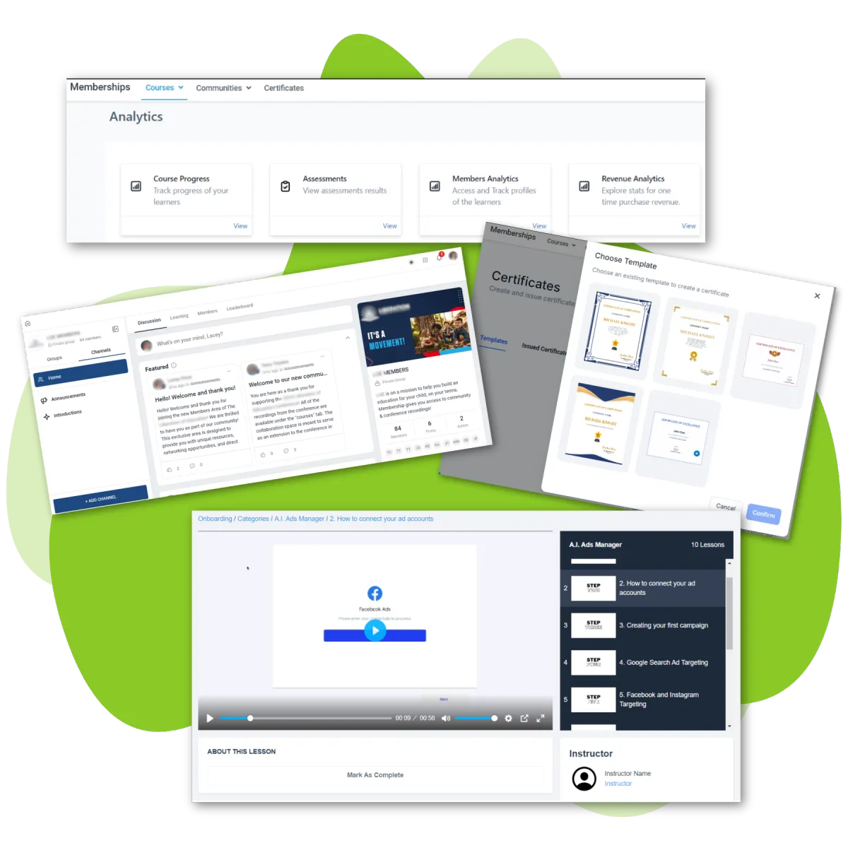 Create a custom members area for your school and include as many courses as you need. Embed video and text lessons, upload PDFs and documents directly to your student portal, and use our workflows to track progress and remind students to complete their lessons.