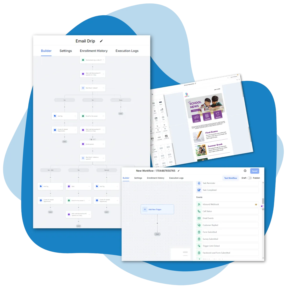 Our advanced workflow builder offers extensive automation capabilities for forms, appointments, tags, courses, and more. With our simple Zap webhook, you can connect with hundreds of third-party apps, making our system the most robust and flexible solution for your microschool's needs.
